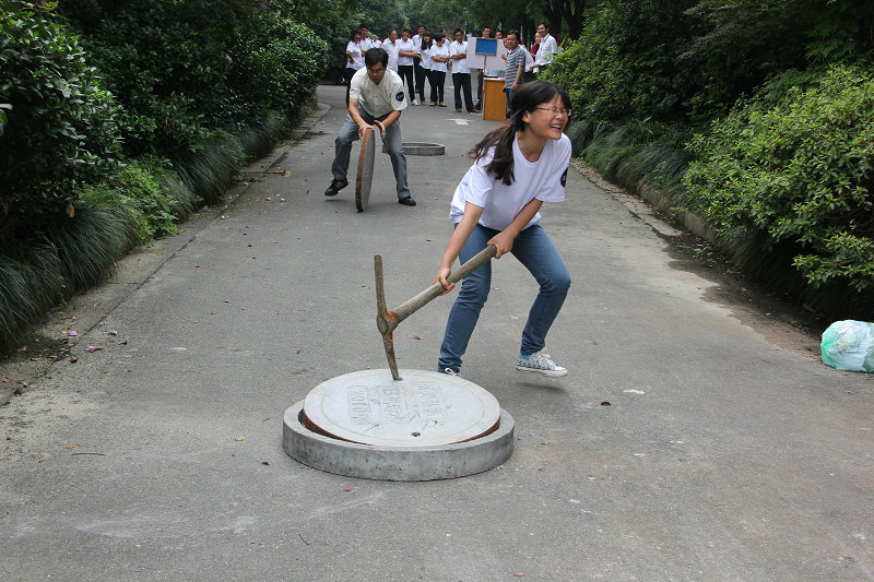 圖為更換窨井蓋比賽