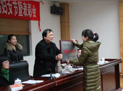 圖為集團高副書記為獲得2011年度婦聯(lián)先進集體頒獎