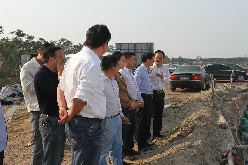 圖為檢查組一行在新建填埋場(chǎng)建設(shè)現(xiàn)場(chǎng)進(jìn)行檢查