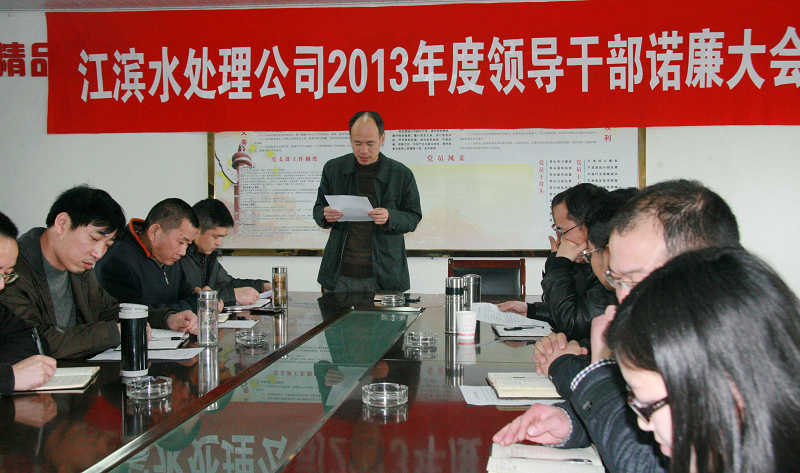 3月26日下午,江濱水處理公司2012年度領(lǐng)導(dǎo)干部諾廉大會在二樓會議室舉行,黨支部書記傅小春主持會議,公司中層正職以上干部共計9人結(jié)合自身工作崗位,就如何加強廉潔自律意識、做好廉政風(fēng)險防控做出承諾,接受職工監(jiān)督。