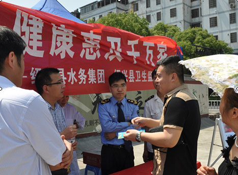 5月14日上午,縣水務(wù)集團(tuán)與縣衛(wèi)生監(jiān)督所聯(lián)合在柯橋城區(qū)開展飲用水衛(wèi)生宣傳活動,發(fā)放飲用水知識宣傳頁,并上門為用戶開展免費(fèi)水質(zhì)檢測服務(wù)。