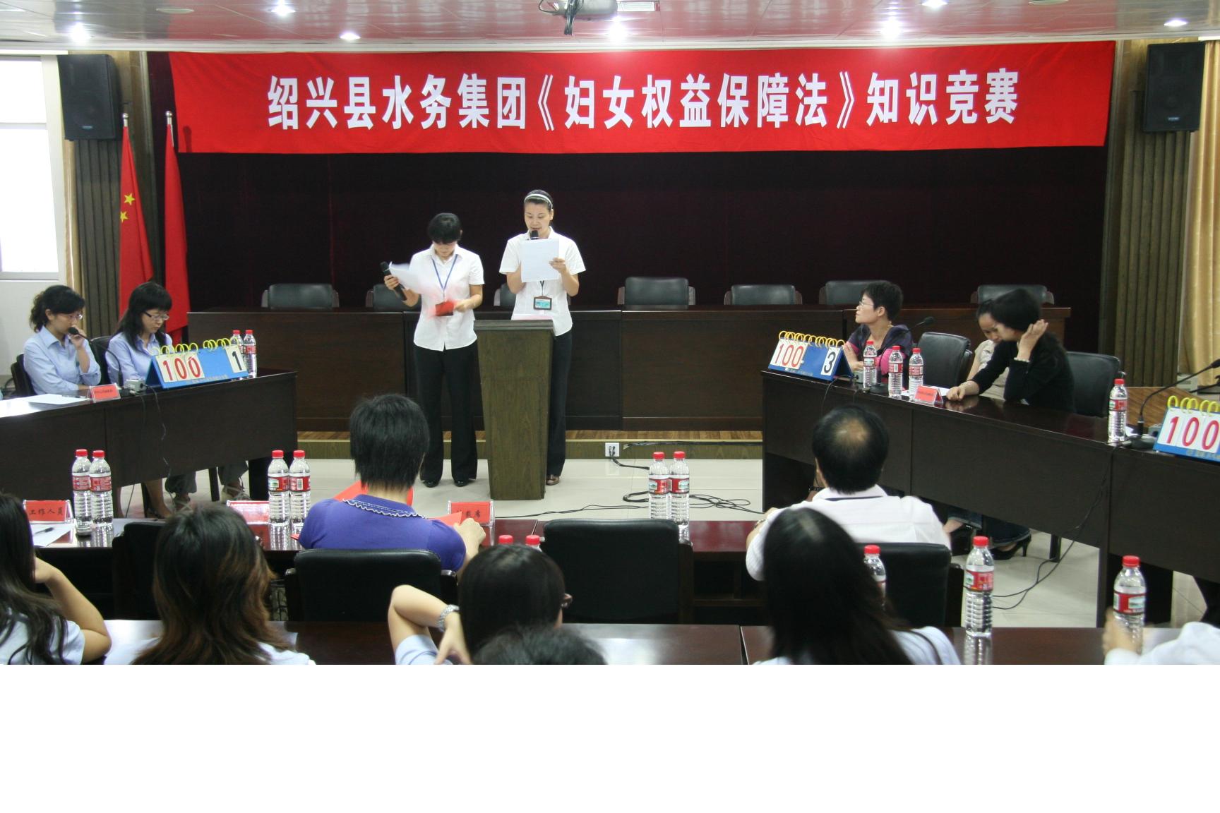 為廣泛深入地學(xué)習(xí)、宣傳、貫徹《中華人民共和國(guó)婦女權(quán)益保障法》,提高廣大女職工的法律意識(shí)及依法維護(hù)自身利益的能力,在“十一”前夕,水務(wù)集團(tuán)婦聯(lián)舉辦《中華人民共和國(guó)婦女權(quán)益保障法》知識(shí)競(jìng)賽。來(lái)自集團(tuán)機(jī)關(guān)、供水、排水、水處理公司婦委會(huì)等4支女職工代表隊(duì)參加比賽。本次競(jìng)賽以現(xiàn)場(chǎng)答題形式,分個(gè)人必答題、小組必答、搶答題和風(fēng)險(xiǎn)題?;顒?dòng)在大家積極踴躍,熱情高漲。經(jīng)過(guò)緊張激勵(lì)的角逐,最終水處理婦委會(huì)榮獲第一名。