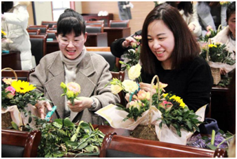 女人遇見花,注定是場美麗的邂逅。3月8日上午,排水公司舉行了“慶三八——提升女性修養(yǎng)”為主題的花藝培訓活動?;顒友垖I(yè)花藝老師給女職工們講解花藝知識,介紹鮮花保鮮小竅門,傳授插花藝術和技巧,集團婦聯(lián)主席童佳萍特邀出席?;顒蝇F(xiàn)場,春意盎然,花香四溢,女職工們躍躍欲試,小試牛刀。康乃馨,向日葵,洋桔梗……在女神們的巧手里煥發(fā)出新的生機。鮮花和女神更配哦。