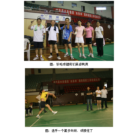 為宣揚(yáng)企業(yè)文化,提倡“快樂工作、健康工作”,增進(jìn)青年職工的團(tuán)隊(duì)協(xié)作意識(shí),增進(jìn)同事之間的默契度,拉近跨部門業(yè)務(wù)的操作距離,2010年5月22日,水務(wù)集團(tuán)團(tuán)委在紹興市城東體育館舉辦了第四屆“水務(wù)杯”羽毛球比賽。