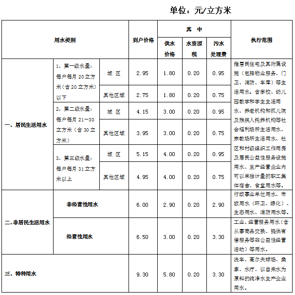 柯橋區(qū)自來水水價(jià)收費(fèi)標(biāo)準(zhǔn)