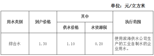 濱海工業(yè)區(qū)綜合水水價(jià)收費(fèi)標(biāo)準(zhǔn)